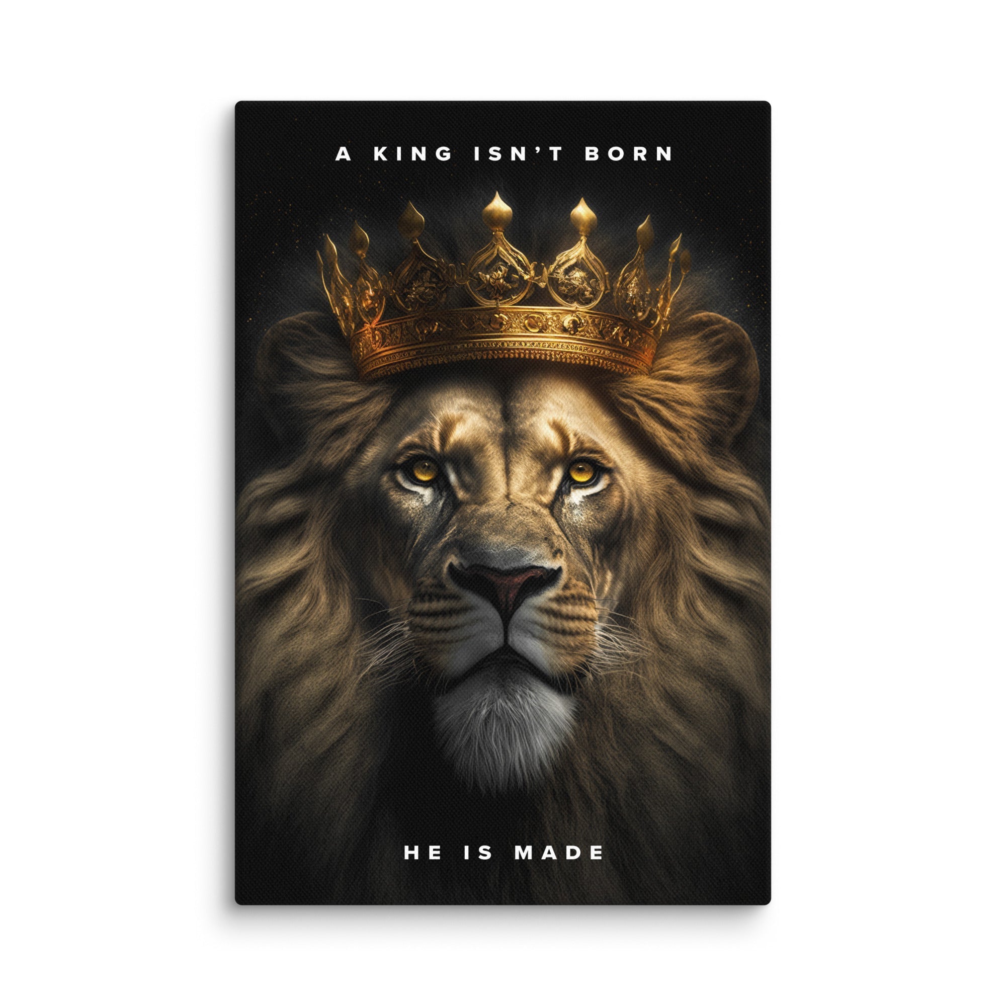 Before a man becomes a king, he is simply a man - and so it must follow that a king does as all men do, the best he can. Dedication, power, patience, understanding, and hard work. Let this canvas become your constant reminder that you are no longer just a man, you are a king!