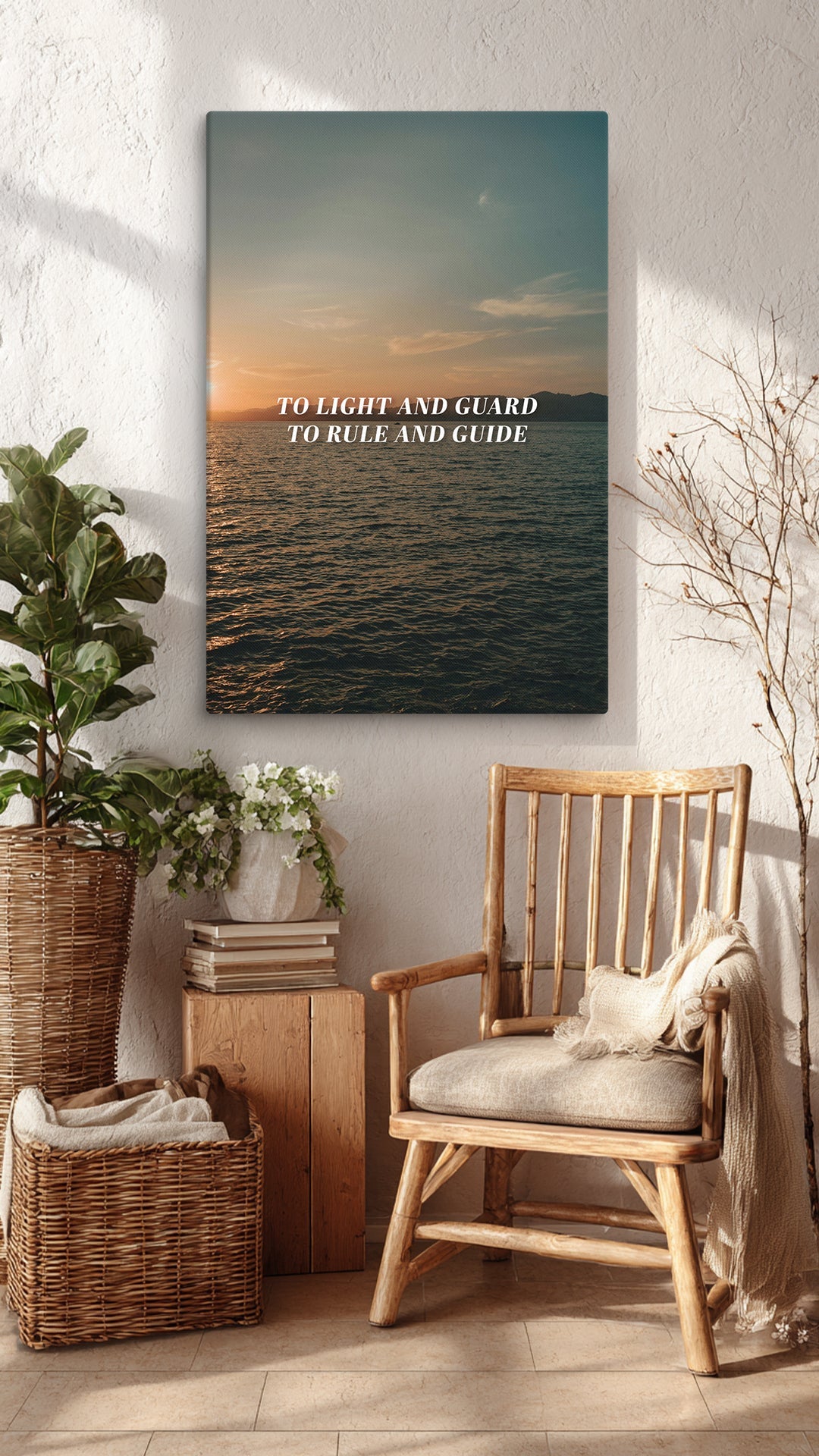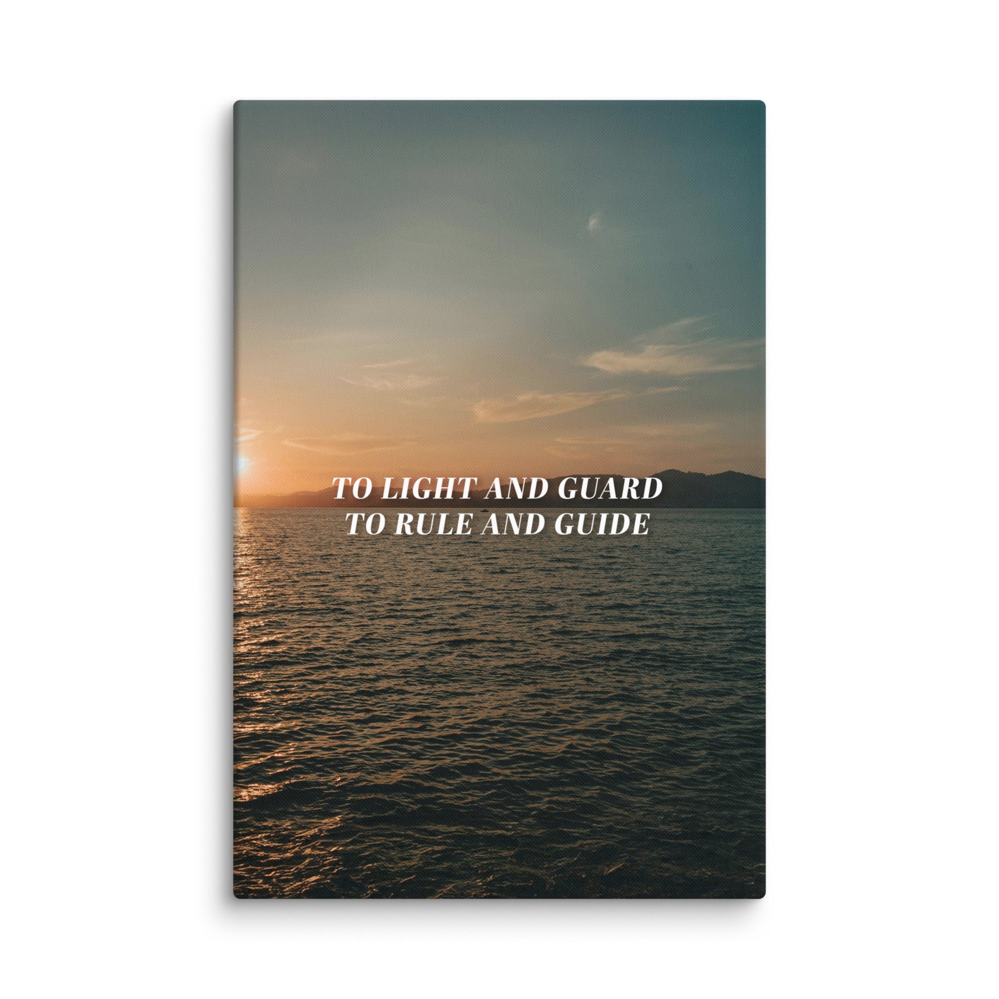 Set against a calm horizon at golden hour, the sea stretches outward while the light remains steady, symbolizing watchfulness, direction, and care. The phrase “To Light and Guard, To Rule and Guide” reflects a plea not for control, but for accompaniment: to be led, protected, and kept on the right path.
