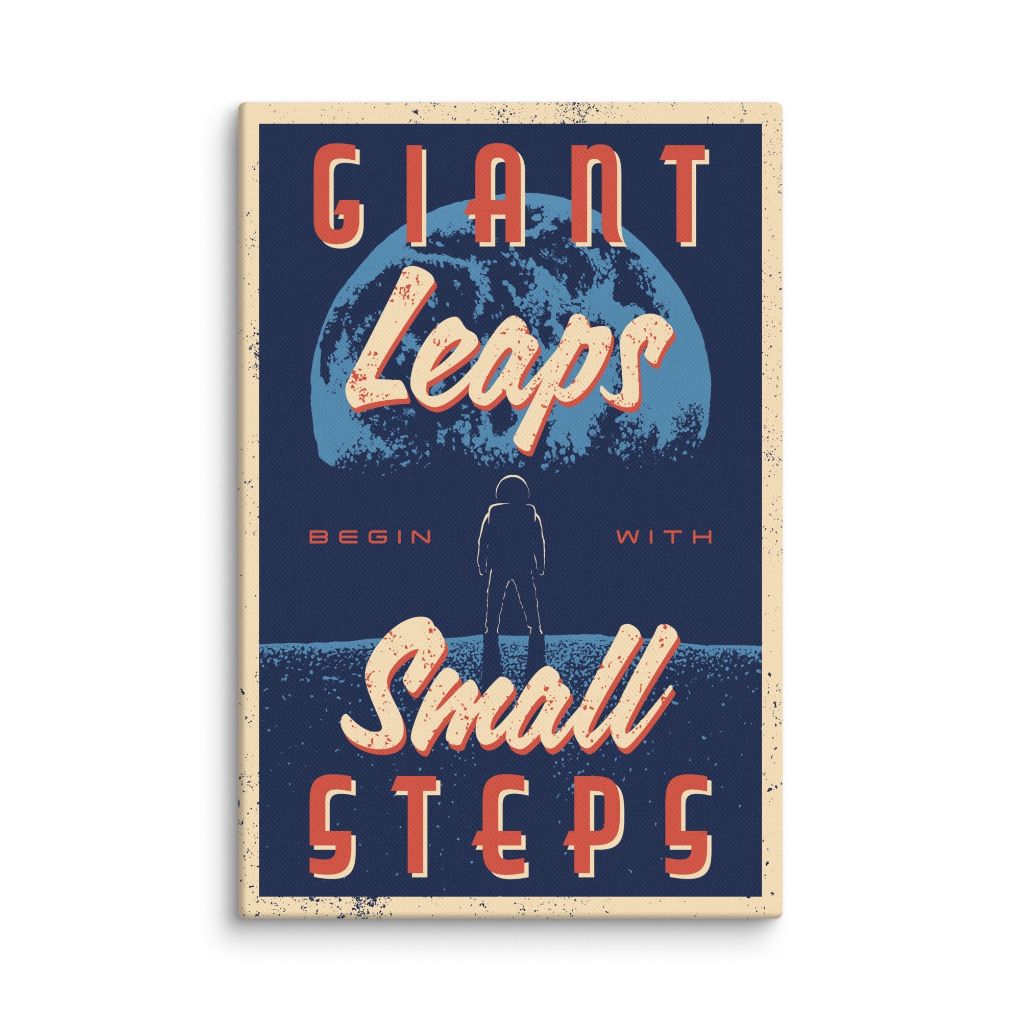 When Neil Armstrong took his first steps on the surface of the moon, it was a giant leap for humanity. However this historic achievement could only be accomplished through a series of carefully coordinated smaller steps. The success of each of these steps was critically dependant to the completion of the step that came before it. Let this canvas be a constant reminder of the importance of the smaller steps that lead to the realization of giant accomplishments.