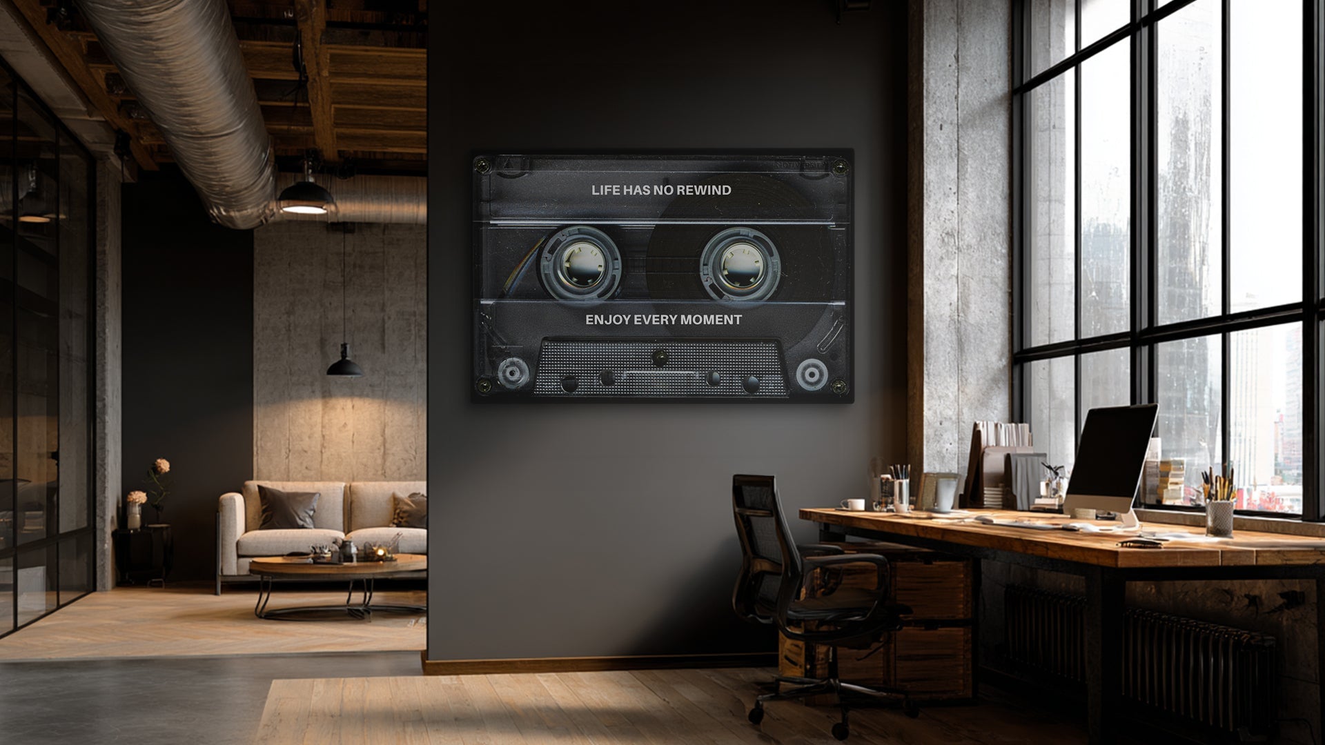Life moves forward, and so should you. Our "Life Has No Rewind" Motivational Canvas is a reminder to embrace every moment. Featuring a vintage cassette tape this artwork blends nostalgia with motivation.